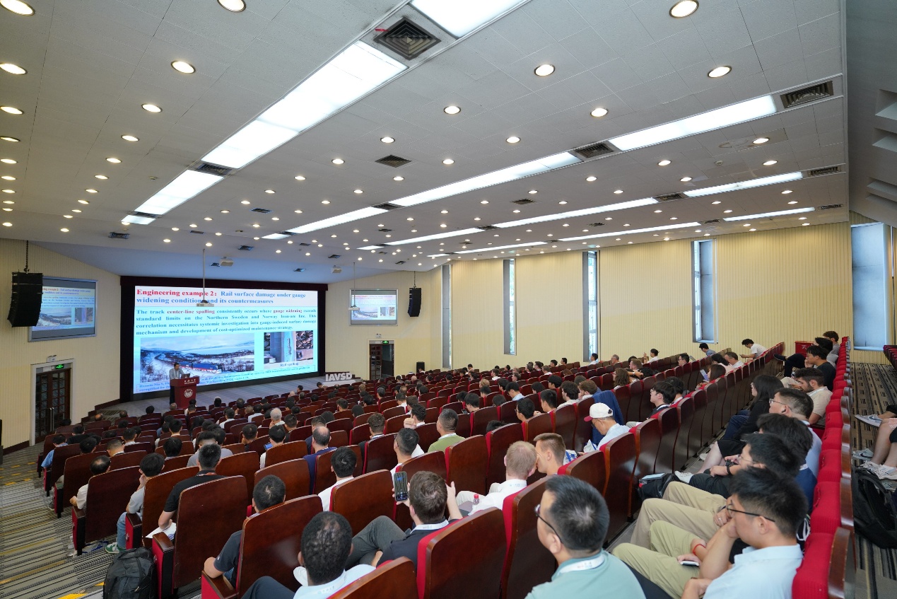 按照惯例,每天上午举行一场60分钟的大会特邀前沿进展报告会(State-of-the-Art presentations,共5场),翟婉明院士应邀作其中一场大会特邀报告,题目为Train–track coupled dynamics problems in heavy-haul rail transportation。报告系统评述了重载铁路列车与轨道耦合动力作用问题的研究历程与国内外最新研究进展,重点展示了中国特别是翟院士团队在重载列车系统动力学理论研究与工程应用方面所取得的突出成果,最后提出了未来研究方向及面临的挑战。报告引起了与会代表的热烈讨论。据悉,该述评报告已以54页长文发表在代表车辆系统动力学领域最高学术水平的VEHICLE SYSTEM DYNAMICS国际学术期刊2025年第7期。