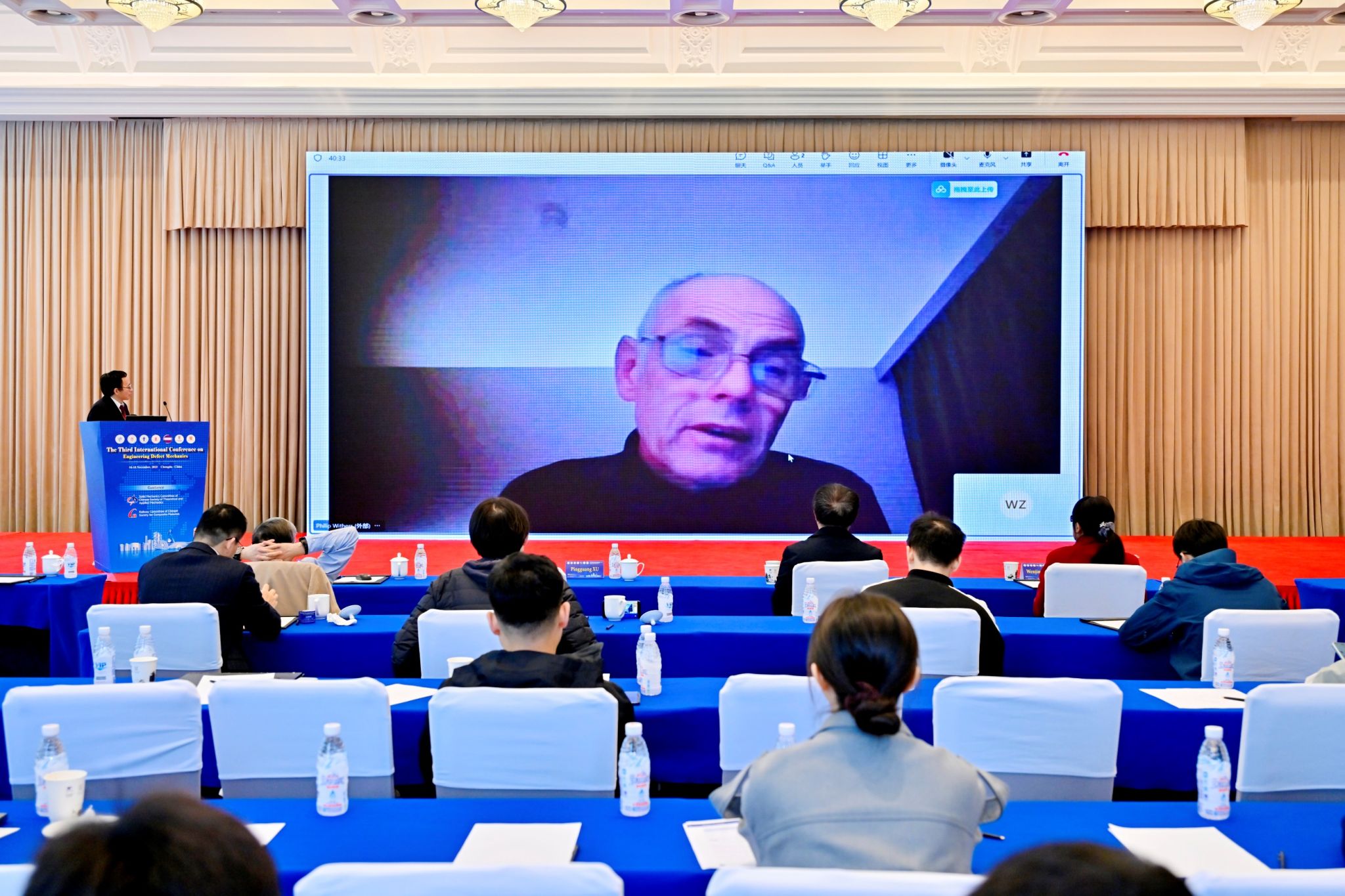 吴圣川研究员主持。康校长对中外参会代表的远道而来表示诚挚欢迎,期望各方通过深度学术交流,共同推动工程缺陷容限在关键承载结构安全评估中的创新应用与高质量发展。
