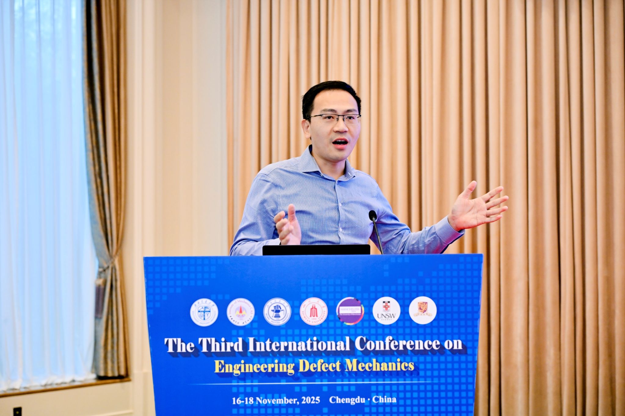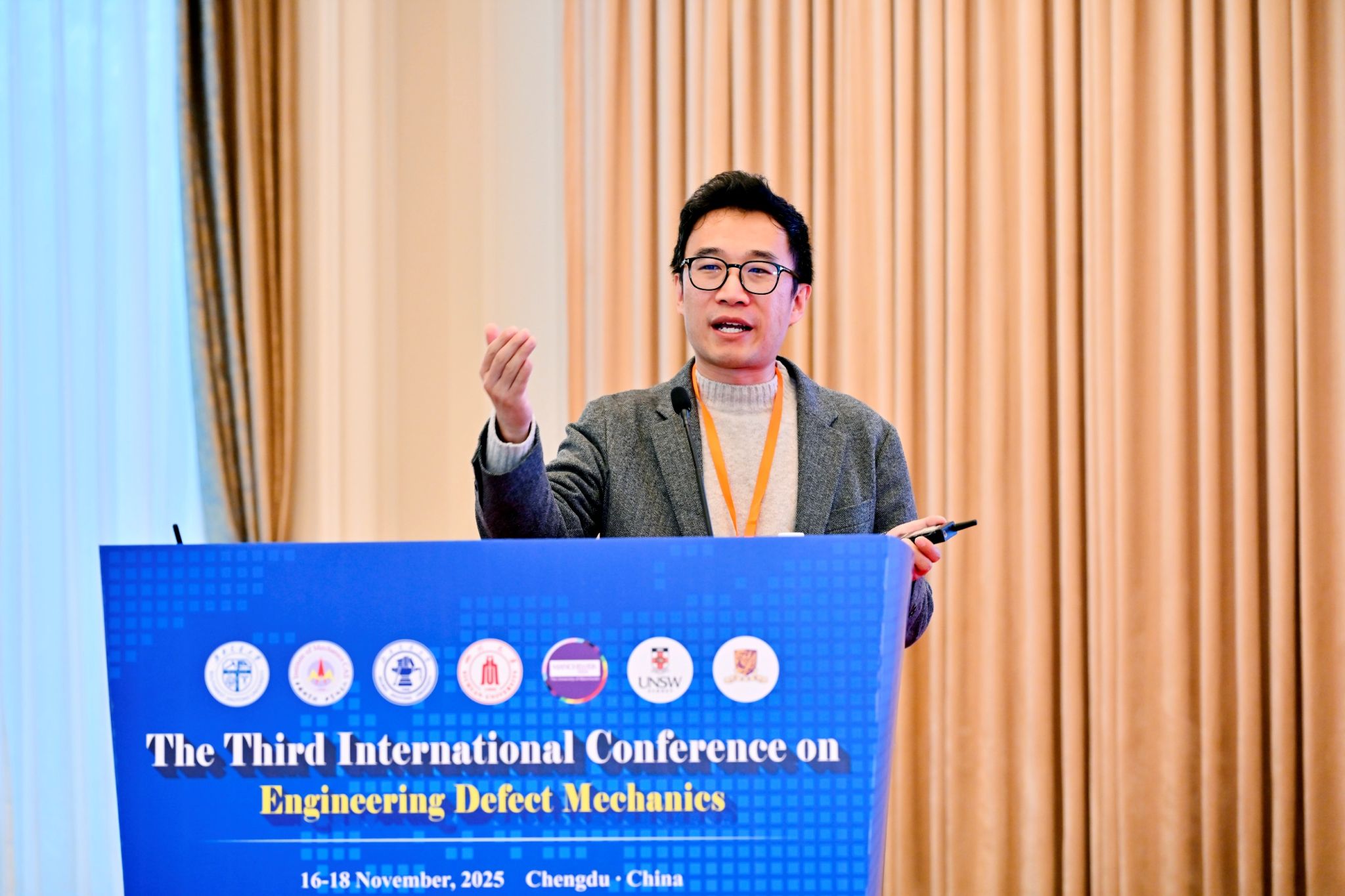2025年11月16日-18日,第三届工程缺陷容限力学国际学术会议(ICEDM2025)在四川成都金牛宾馆成功召开。本次大会由中国力学学会固体力学专业委员会、中国复合材料学会轨道交通复合材料专业委员会联合主办,西南交通大学、中国科学院力学研究所、北京交通大学、四川大学、英国曼彻斯特大学、澳大利亚新南威尔士大学、香港中文大学等国内外顶尖高校及科研院所联合承办,吸引了领域内众多学者齐聚蓉城。