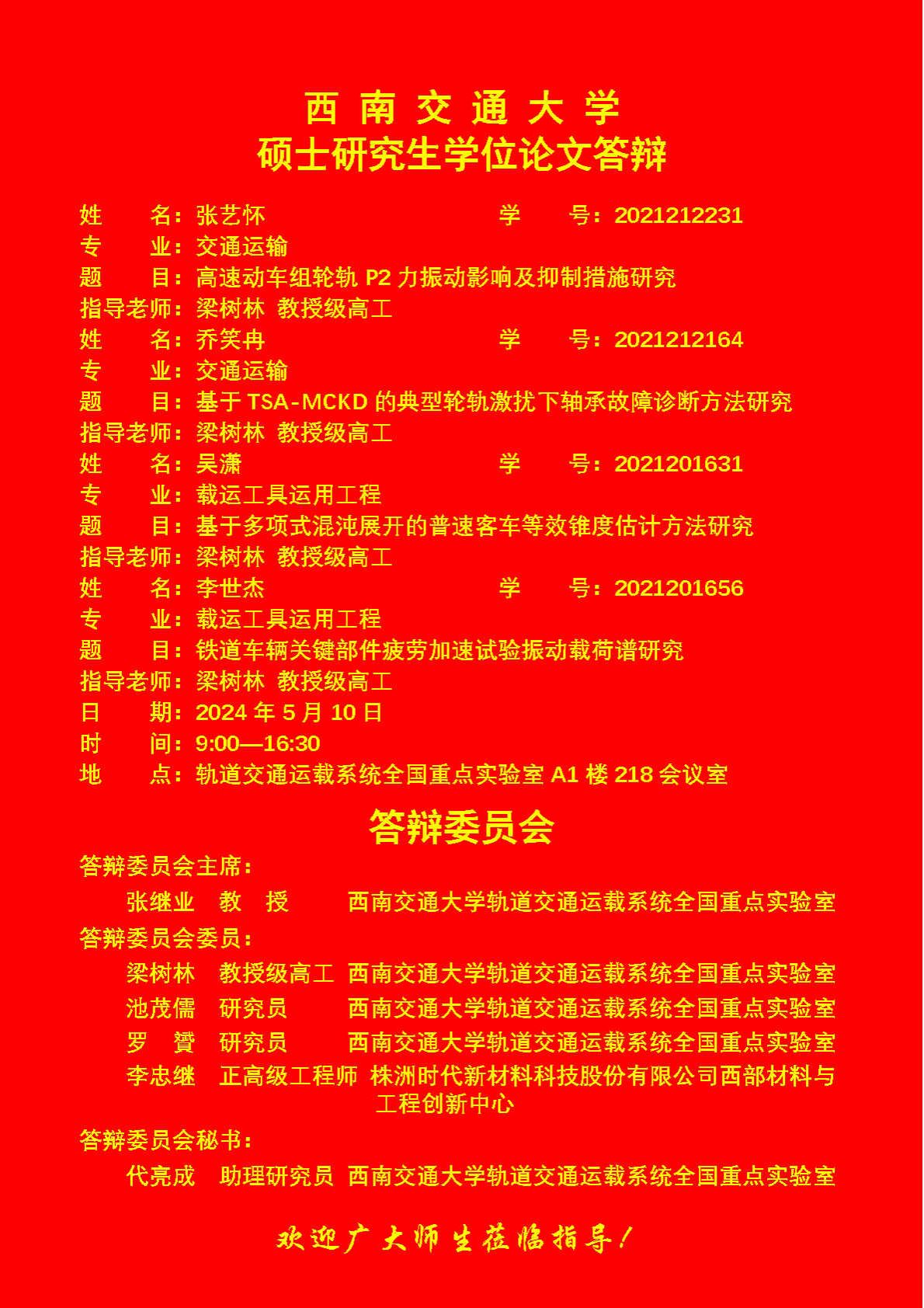 西南交通大学张艺怀、乔笑冉、吴潇、李世杰硕士学位论文答辩