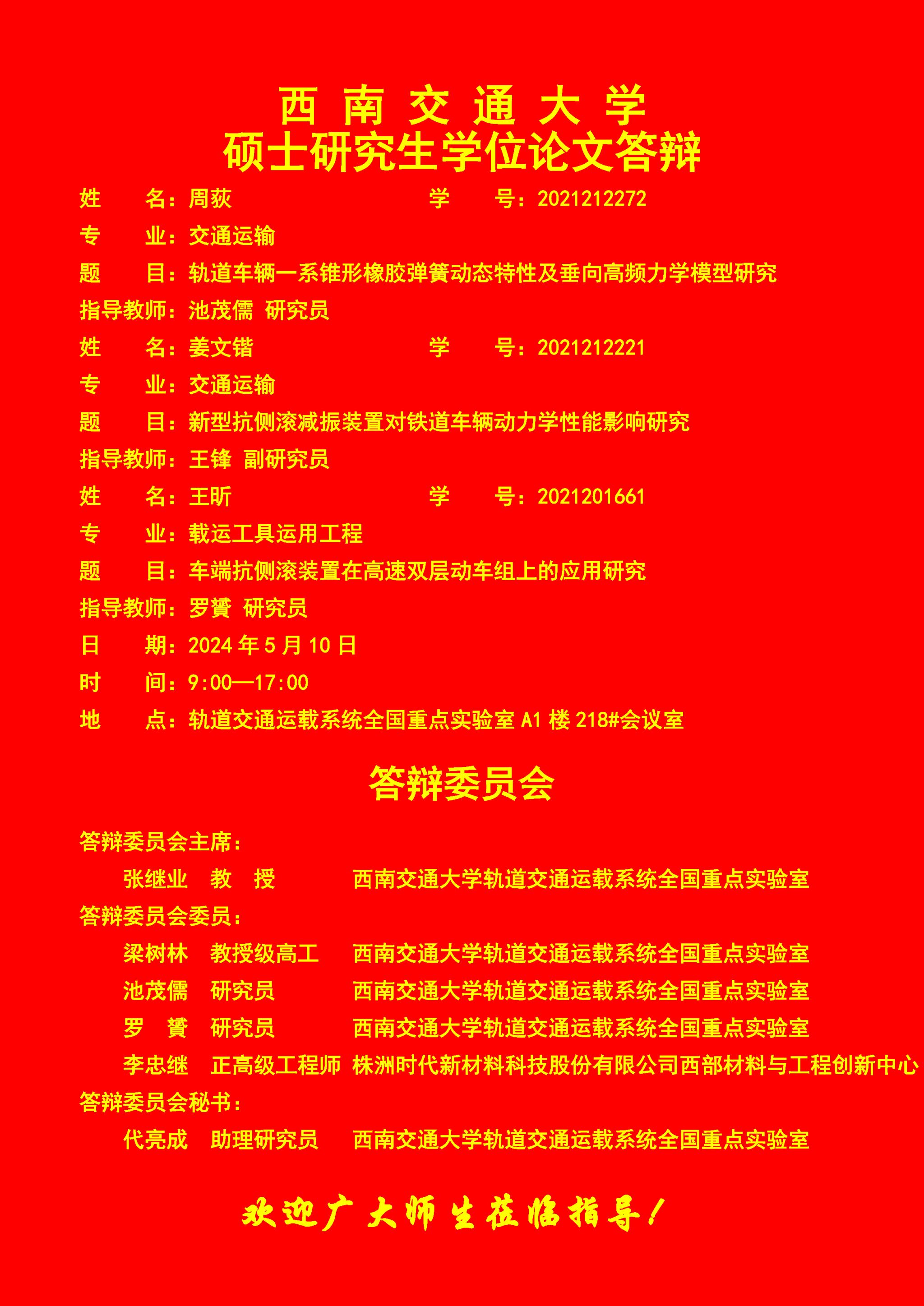 西南交通大学郑绍东 周昊南、 张少轩、 黄初贤硕士学位论文答辩