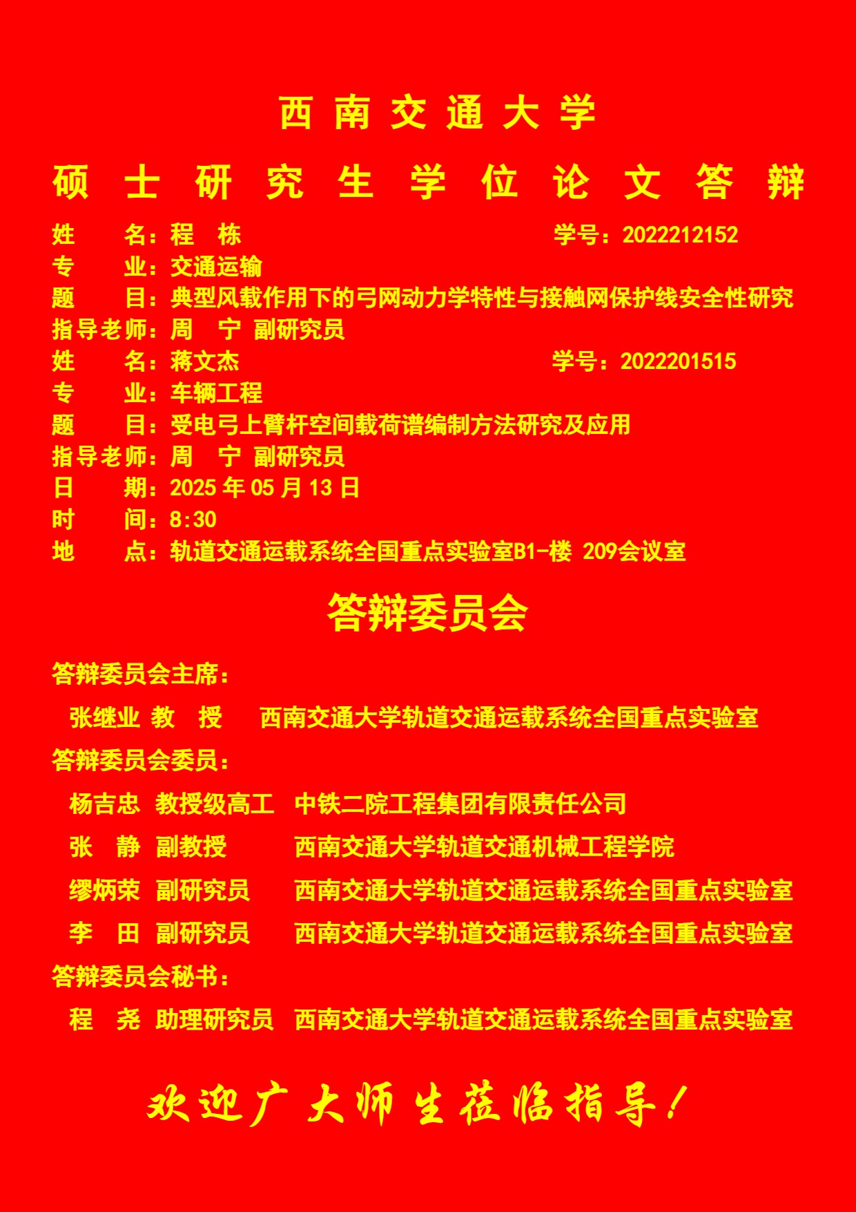 西南交通大学程栋、蒋文杰硕士学位论文答辩
