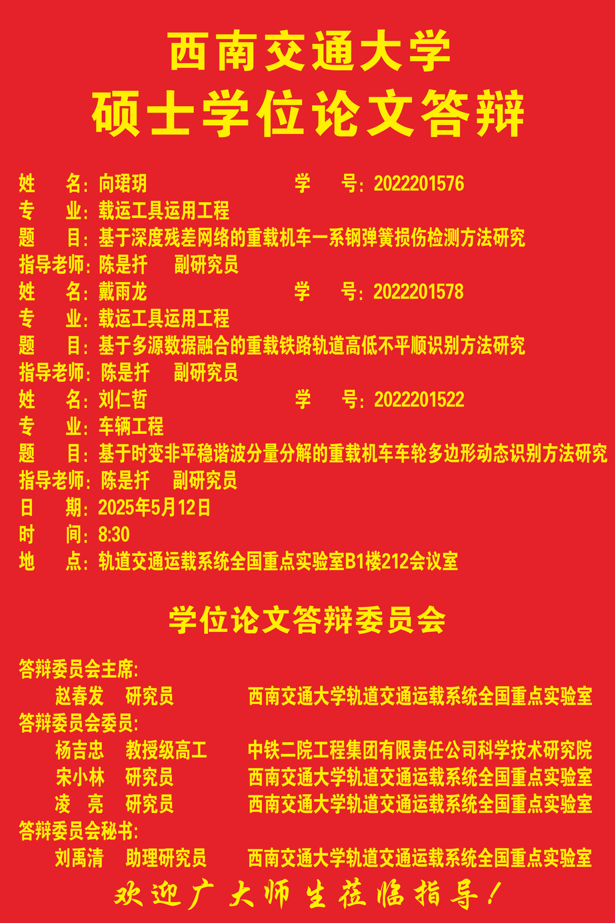 西南交通大学向珺玥、戴雨龙、刘仁哲硕士学位论文答辩
