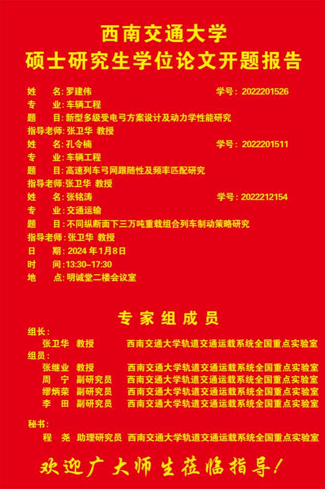 西南交通大学罗建伟、孔令楠、张铭涛硕士研究生开题报告