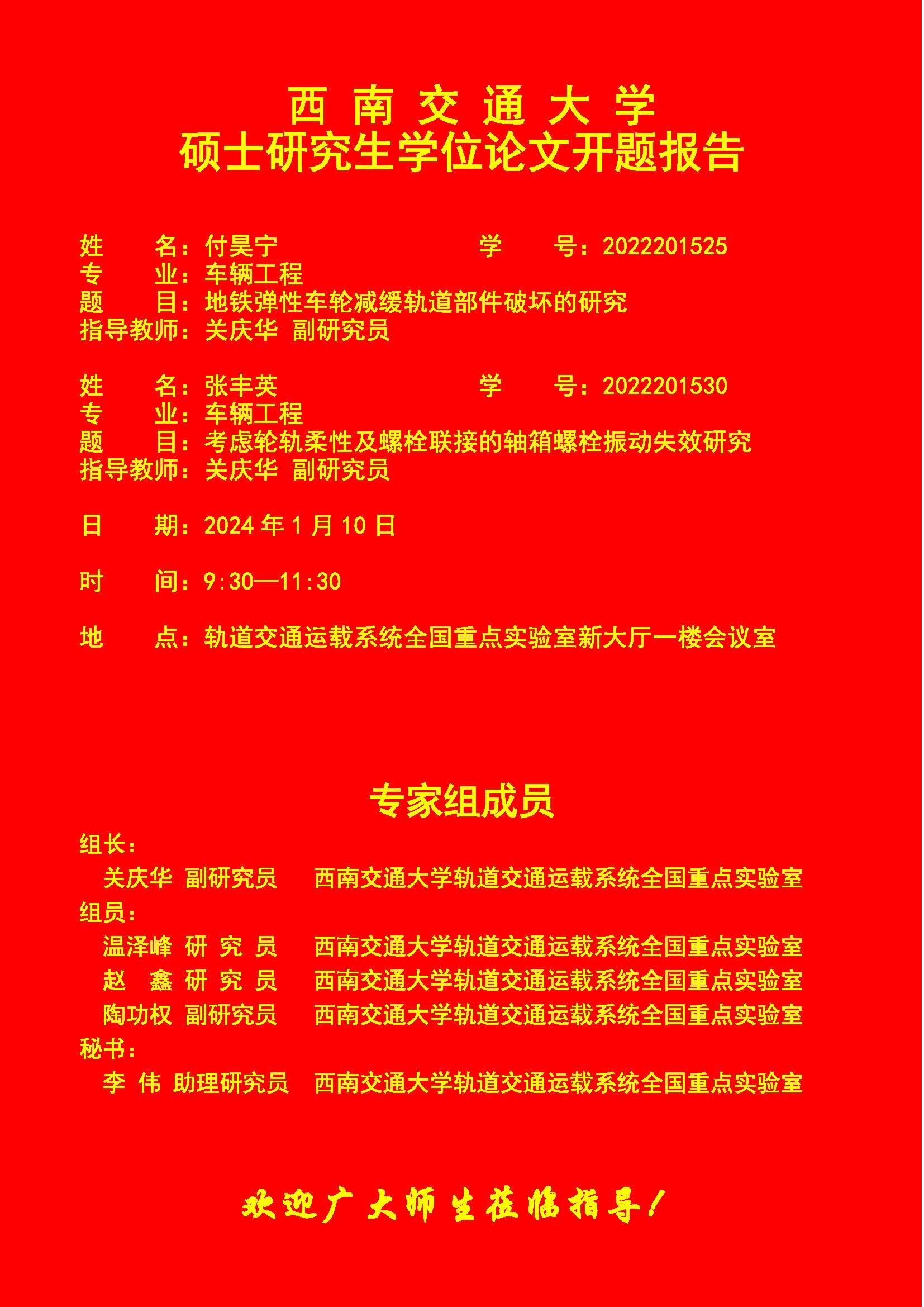 西南交通大学付昊宁、张丰英硕士研究生开题报告